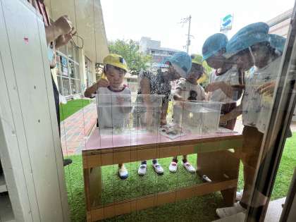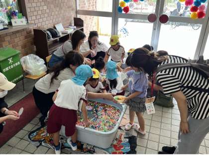 いろいろな遊びの場があり、子どもたちは大興奮!5つのグループに分かれ、腕にカードをつけてもらって遊び始めました。