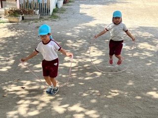 ぼく6回跳べた!見てて!5歳児ほし組が縄跳びをしています。