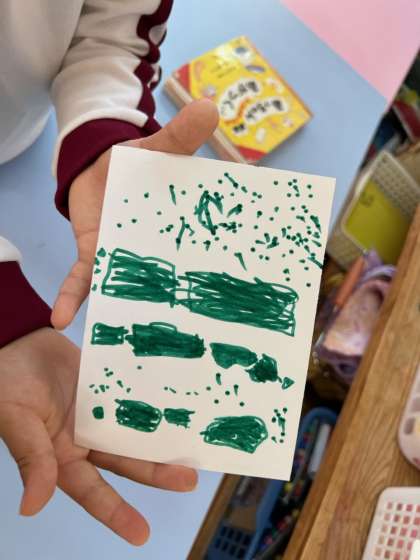 ピーマン100個! 公開日 2023/10/19 更新日 2023/10/19 できごと 昨日、ふれあい苗植えの日でした。レタス、ブロッコリー、カリフラワー、水菜の苗をそれぞれ植えました。それで思い出したのか、4歳児つき組さんが描いて見せてくれました。 「ピーマン100個!」 いいね(0)