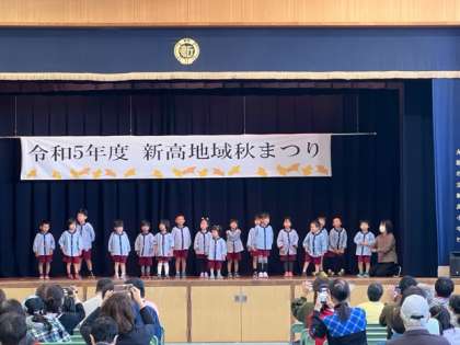 新高地域秋まつり 公開日 2023/10/23 更新日 2023/10/23 できごと 昨日、新高地域の秋祭りに4.5歳児18名の子どもたちが参加しました。ダンスや歌を披露してたくさんの拍手をいただきました。舞台の上は緊張したと思いますが、みんなよい笑顔でした。 いいね(0)