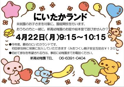 未就園児対象の園庭開放『にいたかランド』を行います。