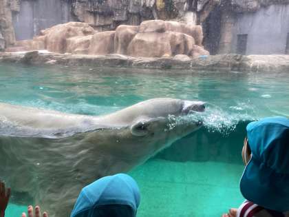 シロクマは水にダイブしてみんなのところへ泳いできてくれまた。