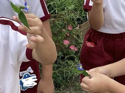 園長先生の話の中で、園庭にある3つの草花の紹介がありました