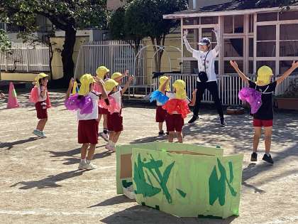 運動会後、4歳児5歳児が一緒に「はらぺこあおむしの大冒険」に出かけていきそうです。
