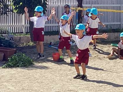 4歳児の姿を優しく応援し、楽しいと感じたことは一緒になって楽しむ5歳児の姿がありました。
