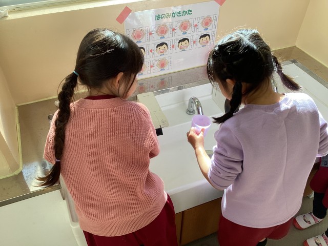 手洗い、うがいを頑張ってます! 公開日 2025/12/19 更新日 2025/12/19 できごと 水道の水が冷たい季節ですが、毎日手洗いを頑張っている子どもたち。保健指導で知らせた上手な手の洗い方を実践し、「見て、手がピカピカになったよ!」と、嬉しそうに見せに来てくれたり、手洗いを忘れている友達に「手洗いしないと!」と、声をかけたりする姿が見られます。また、うがいも併せて頑張っています。 いいね(0)