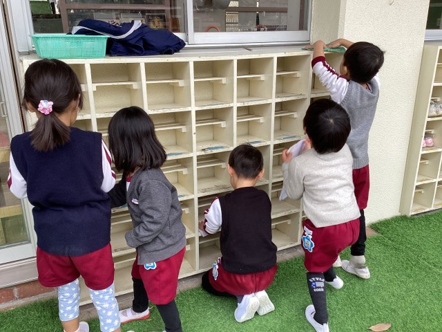 掃除をしました 公開日 2025/12/22 更新日 2025/12/22 できごと 明日で2学期が終わるということで、園内を掃除することにしました。園庭の砂場の道具をお湯で洗ったり、靴箱や保育室のロッカーなどを雑巾で拭いたりしました。その中で、自分だけでなく友達の靴箱も拭いてあげたりしている姿も見られました。皆で力を合わせて頑張ったので、幼稚園がとても綺麗になりました。「ピカピカになったね!」と、嬉しそうな様子の子どもたちでした。 いいね(0)