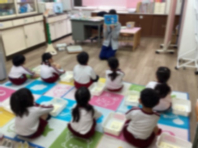 その後、毎日元気に過ごすために大切なこと(夜9時までには寝る、朝7時までには起きる、朝ごはんを食べる、朝ごはんの後にトイレに座る時間をつくって排便する)を伝えました。子どもたちから「いつも早く寝てるよ!」「毎日朝ごはん食べてる!」という声がたくさん聞こえてきたので、これからも規則正しい生活習慣を心がけて、毎日元気に幼稚園に来てくれることを願っています。