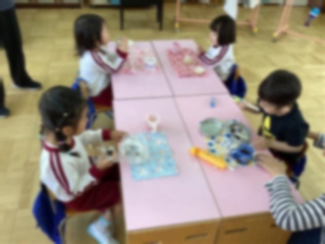 4月14日(火)は、4歳児つき組は入園して初めてのお弁当の日。初日は、おにぎり昼食でした。