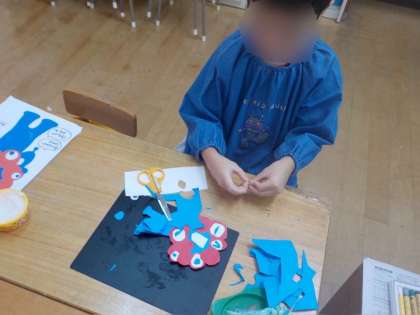 あやめ組みんなでみゃくみゃくとうりちゃんの好きなもの考え、友達と一緒につくることへの充実感や満足感を味わっていました。