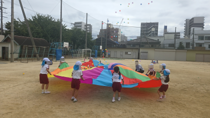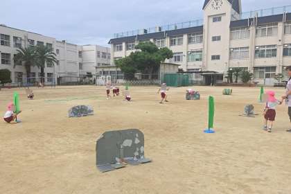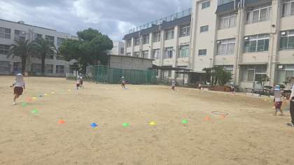 神路小学校の校庭をお借りし、広い場でのびのびと活動しています。