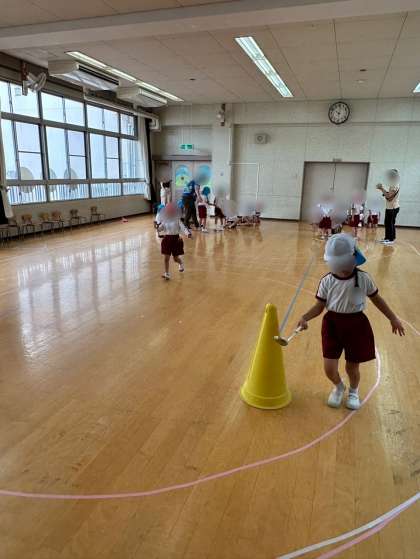 運動会の小学生競技、おたまリレーもみんなで楽しみました。小学生と違って、途中で何度も落としましたが大盛り上がりでした。