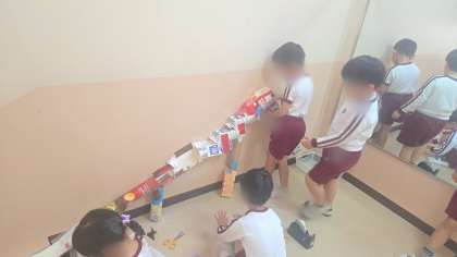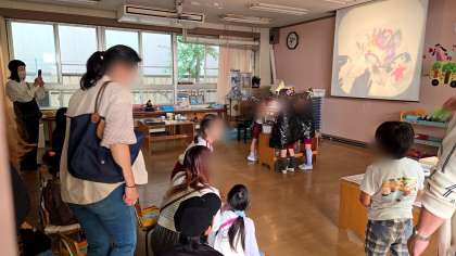 日頃遊んでいる大好きな遊びや友達と色々考えを出し合いながら、つくりあげている途中の遊びなど、見ていただき、いつもと違う雰囲気の中、見てもらう喜びを味わっている様子の子どもたちでした。