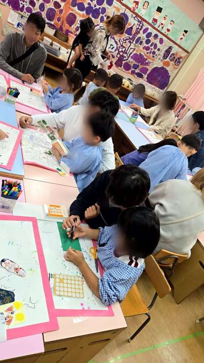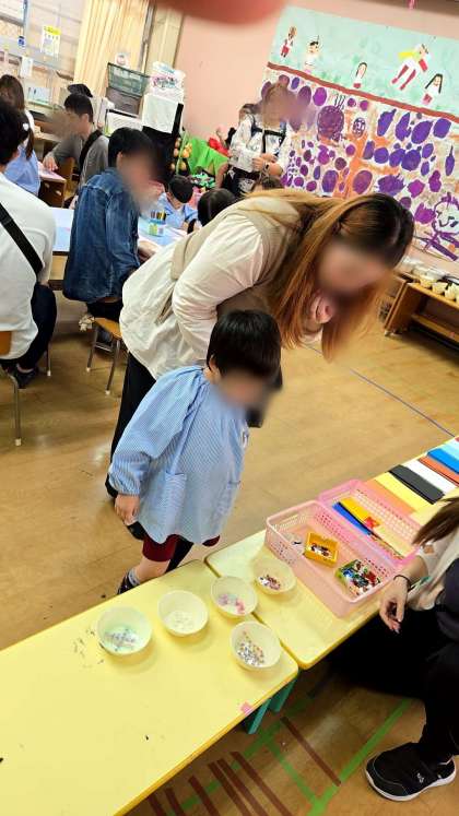 各家庭から1年間飾りたい写真や材料を持ってきて、お家の方と話し合いながら、楽しんでいる様子も微笑ましかったです。