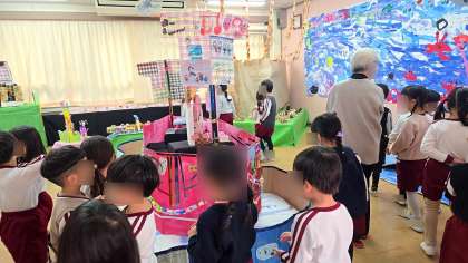 これまで、それぞれにイメージを広げ、つくることを楽しむ中で工夫の面白さや、根気よく取り組む姿が見られ、作品や絵には子どもたちの思いがたっぷり詰まっています。
