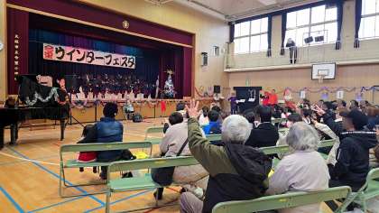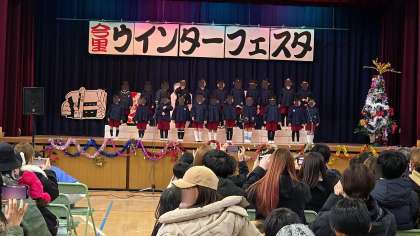 午後からは、小学校講堂の舞台に立って、歌を披露しました。