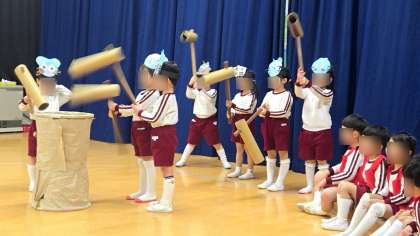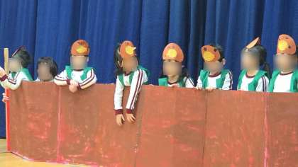 初めての劇遊びでしたが、お話に親しみ、友達や先生と一緒にイメージを共有して、楽しい劇遊びになりました。