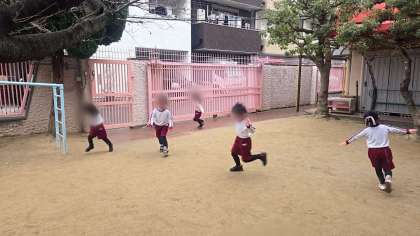 一時預かり事業 くまちゃんクラブに参加していた子どもたちは、雪が降っていることを知ると、大喜びで園庭に飛び出しました♪