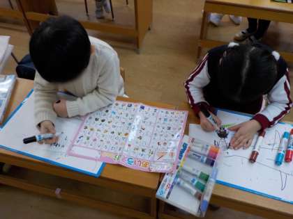 また、「ありがとうのお手紙かきたい」と今日の授業体験を振り返りながら丁寧に絵をかいたり、ひらがな表を一生懸命見ながら「ありがとう」「だいすき」と気持ちを文字にしたりしていました。