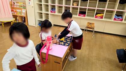 朝からおうちの方がつくってくださったお弁当を早く食べたくて、お弁当の時間を楽しみに待っていました。