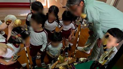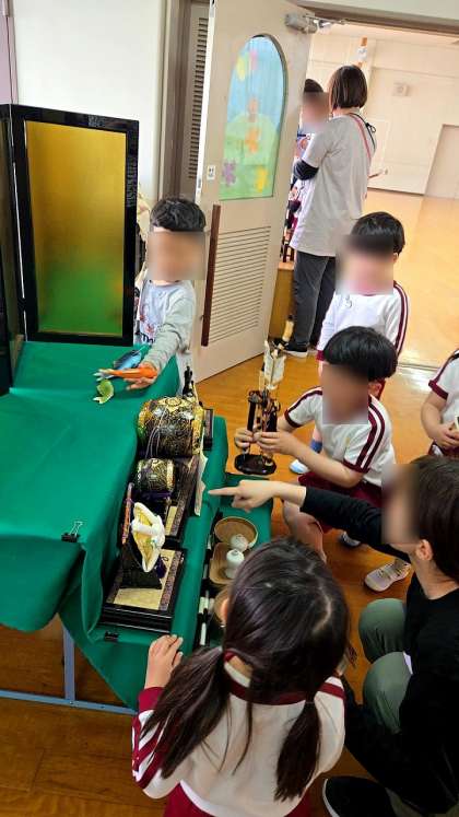 先生や友達と話し合いながら飾って、さくら組にも見せてくれました。