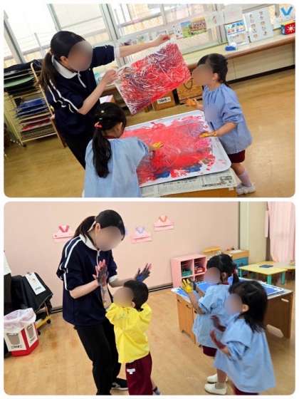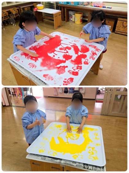 さくら組の子どもたちはフィンガーペインティング遊びも楽しみました♪