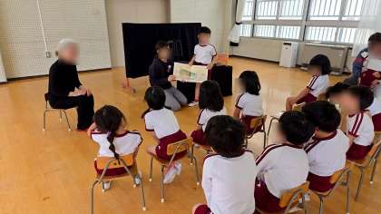 毎月、読み聞かせに来てくださることを楽しみにしているので、玄関までお迎えに行く子どもたちもいました。