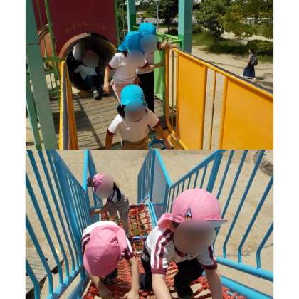 遊具広場では、幼稚園にはない大きな遊具や滑り台で遊ぶことを楽しみました!「もう一回やる!」と存分に体を動かして遊んだり、「一緒にあっち行こ」とお友達を誘ったりと、楽しい時間を過ごすことができました!