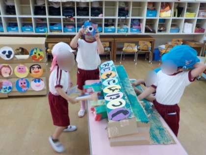 あやめ組はわにわにぱにっくのお店をしました。ゆっくりわにを動かしてみたり、はやくしてみたり工夫していました。カメラマンも登場し撮影も楽しんでいました!