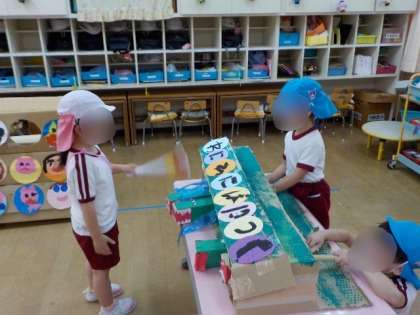 7/1(火)こども夏まつり・ふれあい夏まつりがあります♪今日はこども夏まつり当日に向けて、あやめ組とさくら組でお祭りごっこをしました!