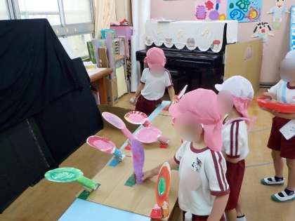 夏まつりごっこが終わると、「楽しかった〜」「もう一回お祭りごっこしたい」「もっとお客さん来てほしい」と話す姿が見られました。
