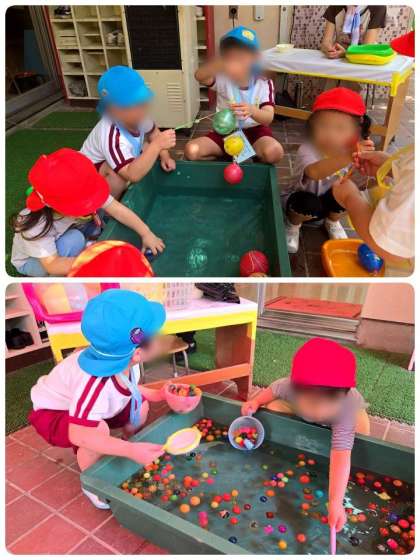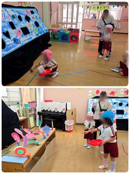 あやめ組・さくら組・ふれあいサークルばらのお友達みんなで夏まつりを楽しんでいます♪