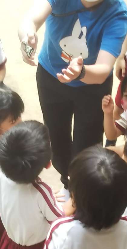 今日もまたチョウチョが羽化しました!あやめ組さんみんなではなしてあげました。「バイバーイ」「元気でねー!」「また来てねー!」