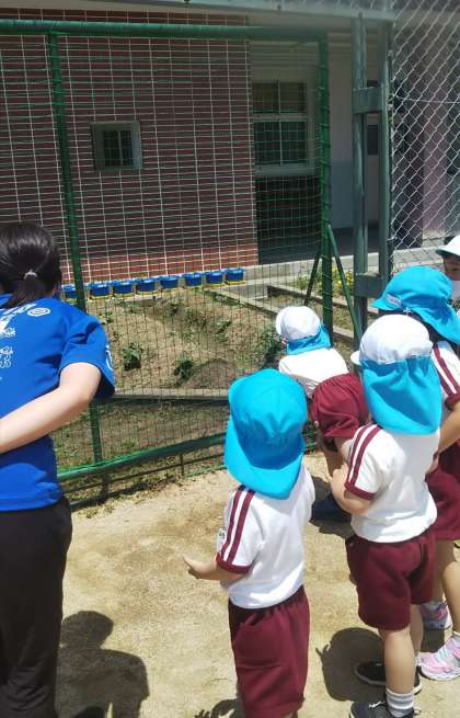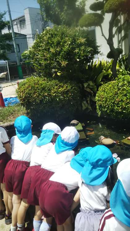 あやめ組が今里小学校にいきました。校庭の池や花壇を見て歩きました