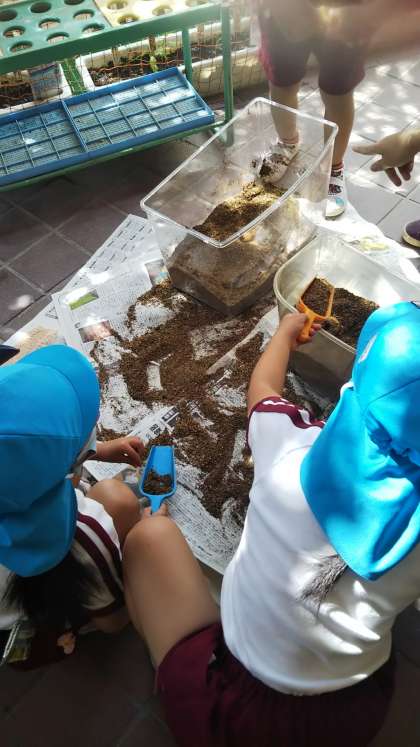 カブトムシの幼虫が大きくなってきたので、今日は幼虫をお引っ越し!