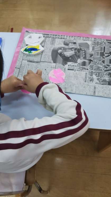 もうすぐ6月生まれさんの誕生会!今月はさくら組がプレゼントを作っています。