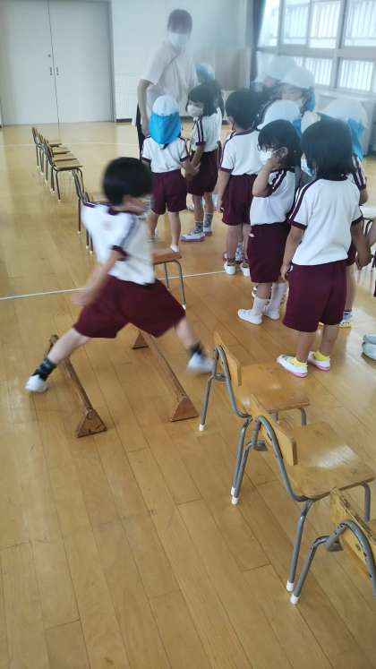 と、いうことで、あやめ組さんと遠足ごっこ。電車の乗り方をみんなでやってみました。これで明日はバッチリ!かな?