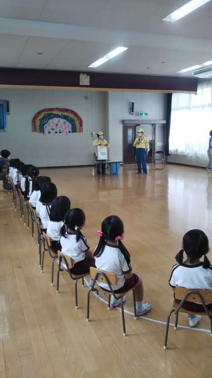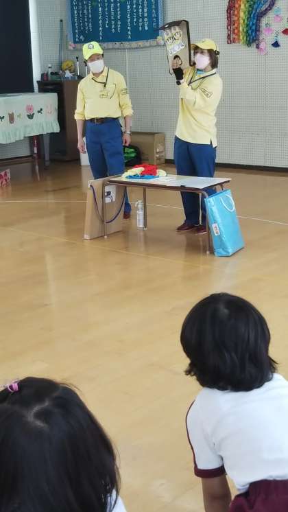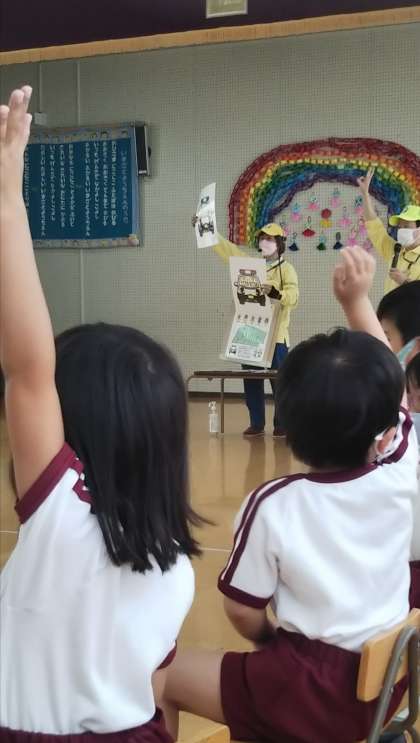 安パトさんが交通安全のお話にきてくださいました。マジックをつかって信号の約束を教えていただきました!