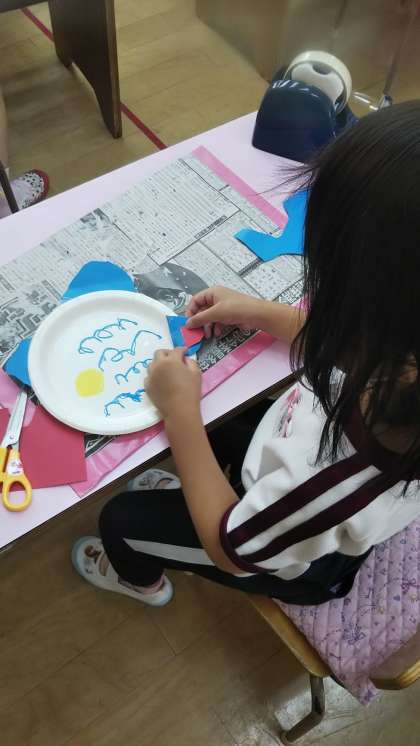 もうすぐ子ども夏祭り!さくら組は「魚(?)釣り」屋さんをすることになりました。自分たちで考えた釣りたい物を楽しそうに作っていました。カメもタコも釣りたいね!