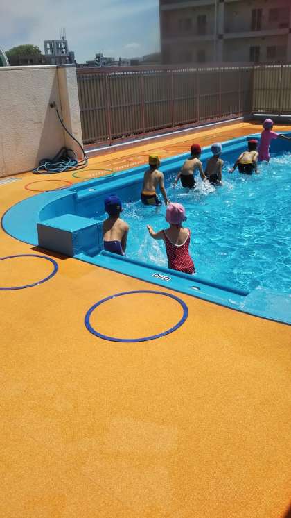 今日はプール開き!「楽しみー!」と朝からワクワクの子どもたちでした。