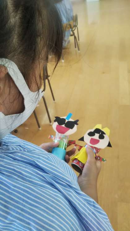 あやめ組が織姫と彦星を作っています。色や柄を考えて、可愛い顔も作っていました。