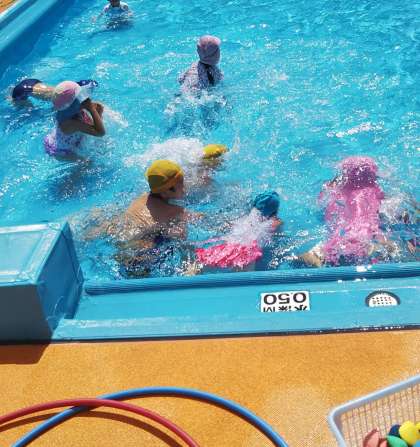 今日はプールで「おふろやさんにいこう」の曲をかけて遊んでいました。