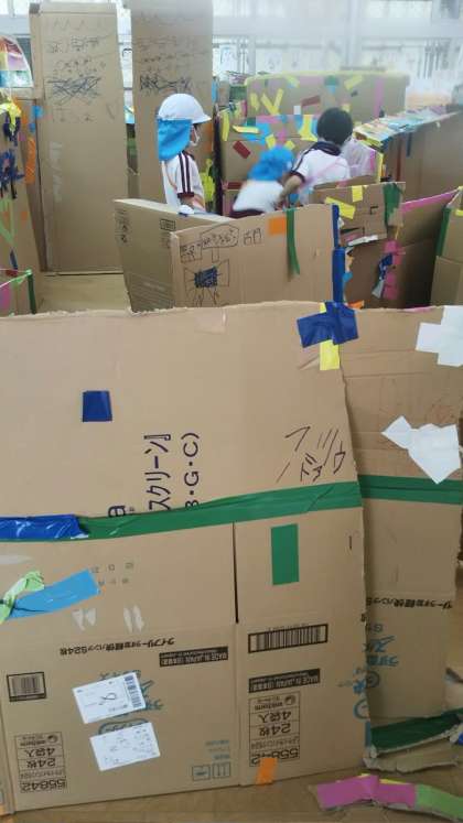 あやめ組の「段ボール迷路」も楽しんでいました!「いらっしゃいませー!」「段ボール迷路でーす」の声も元気いっぱいでした。