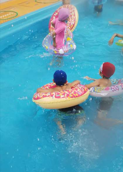 あやめ組は浮き輪を使って遊びました!プカプカ浮かんで楽しいね♪