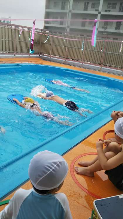 久しぶりのプール! 公開日 2022/07/15 更新日 2022/07/15 子どもの生活 今日は久しぶりにプールで遊びました。今日は今までで一番深いプールです!あやめ組はリレーをしたり、ビート板を使って楽しんだりしていました! いいね(0)