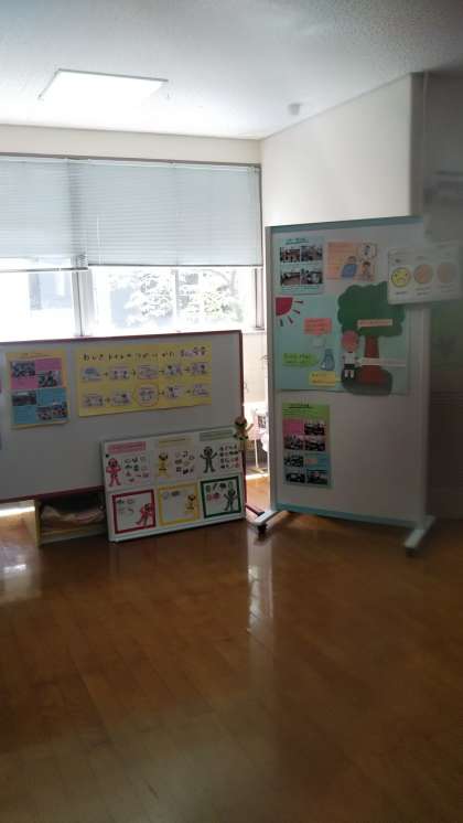 式はクラスごとでの形にしました。遊戯室前には保健指導の掲示もしました。