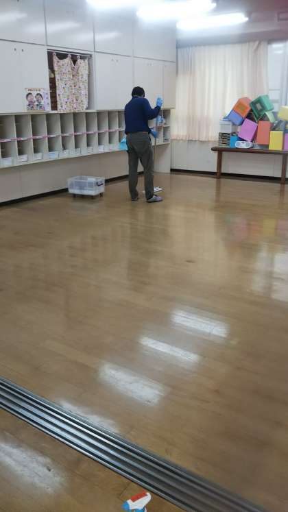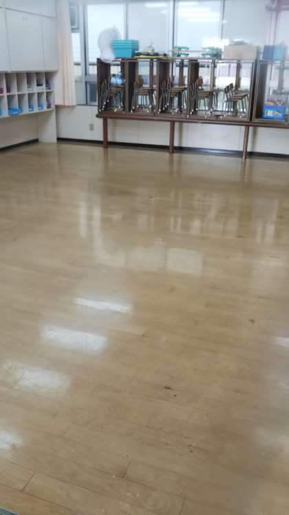 夏休みに入って早速、主事さんが保育室のワックスがけをしてくださいました。