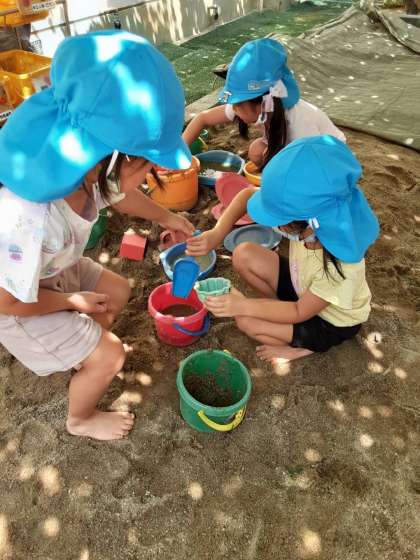 砂場遊び 公開日 2022/08/08 更新日 2022/08/08 子どもの生活 今日のくまちゃんはみんなで砂場で遊んでいます。今日も暑いけれど、日陰で水も使って涼しく、楽しく遊んでいますね。 いいね(0)