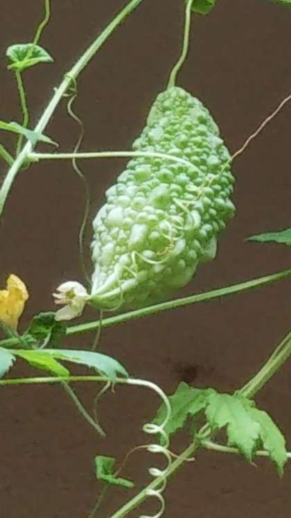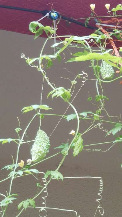 今年はなかなか実をつけなかったゴーヤ。やっと可愛い実がなりました。 もっと大きくな〜あれ♪