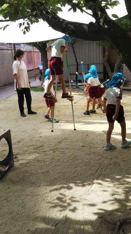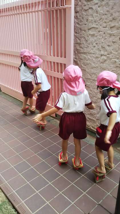 朝から元気いっぱい遊んでいます。竹馬も下駄も久しぶりだけど…ばっちり!